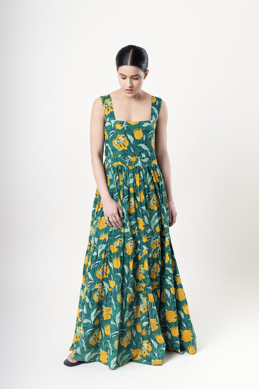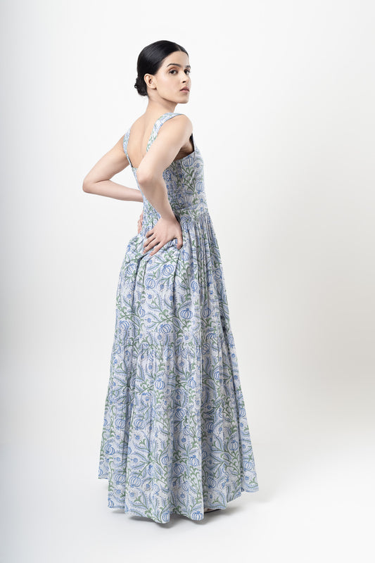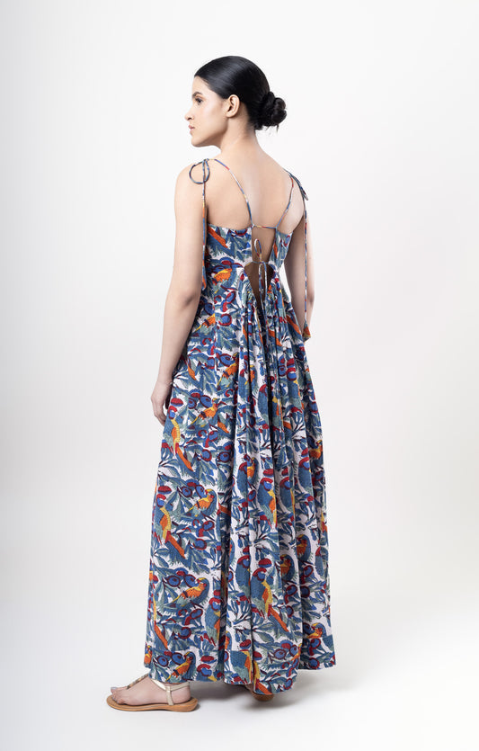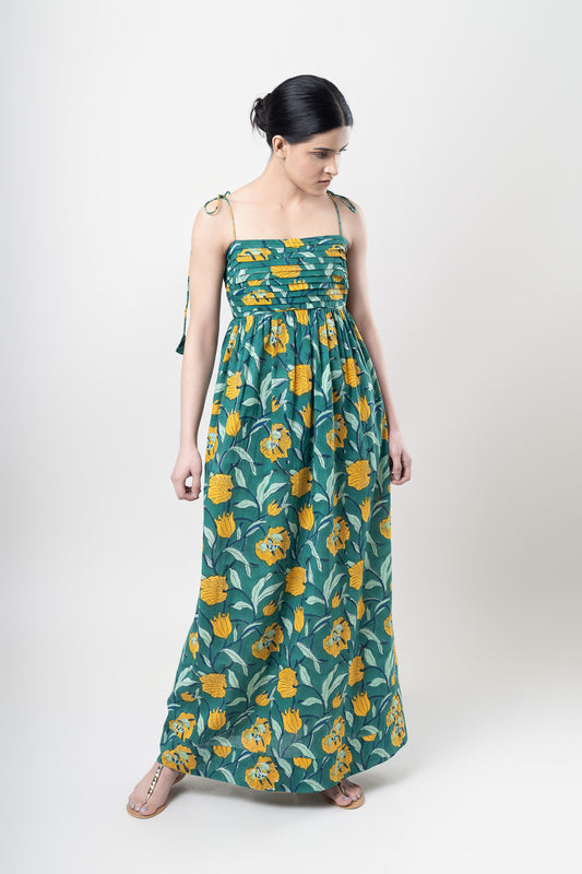 Indulge in the refined sophistication of our Tie-up Maxi Dress, crafted with 100% cotton for a luxurious feel. This dress features a square neck and intricate pleat detailing in relaxed easy fit. Adjustable ties on the shoulders and back add a touch of versatility, while the smocked back ensures a perfect fit. Elevate your wardrobe with this exclusive piece.