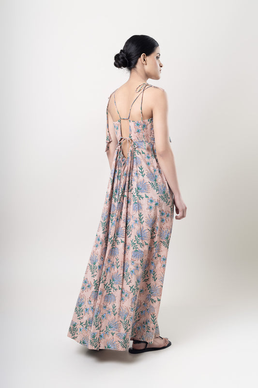 Indulge in the refined sophistication of our Tie-up Maxi Dress, crafted with 100% cotton for a luxurious feel. This dress features a square neck and intricate pleat detailing in relaxed easy fit. Adjustable ties on the shoulders and back add a touch of versatility, while the smocked back ensures a perfect fit. Elevate your wardrobe with this exclusive piece.