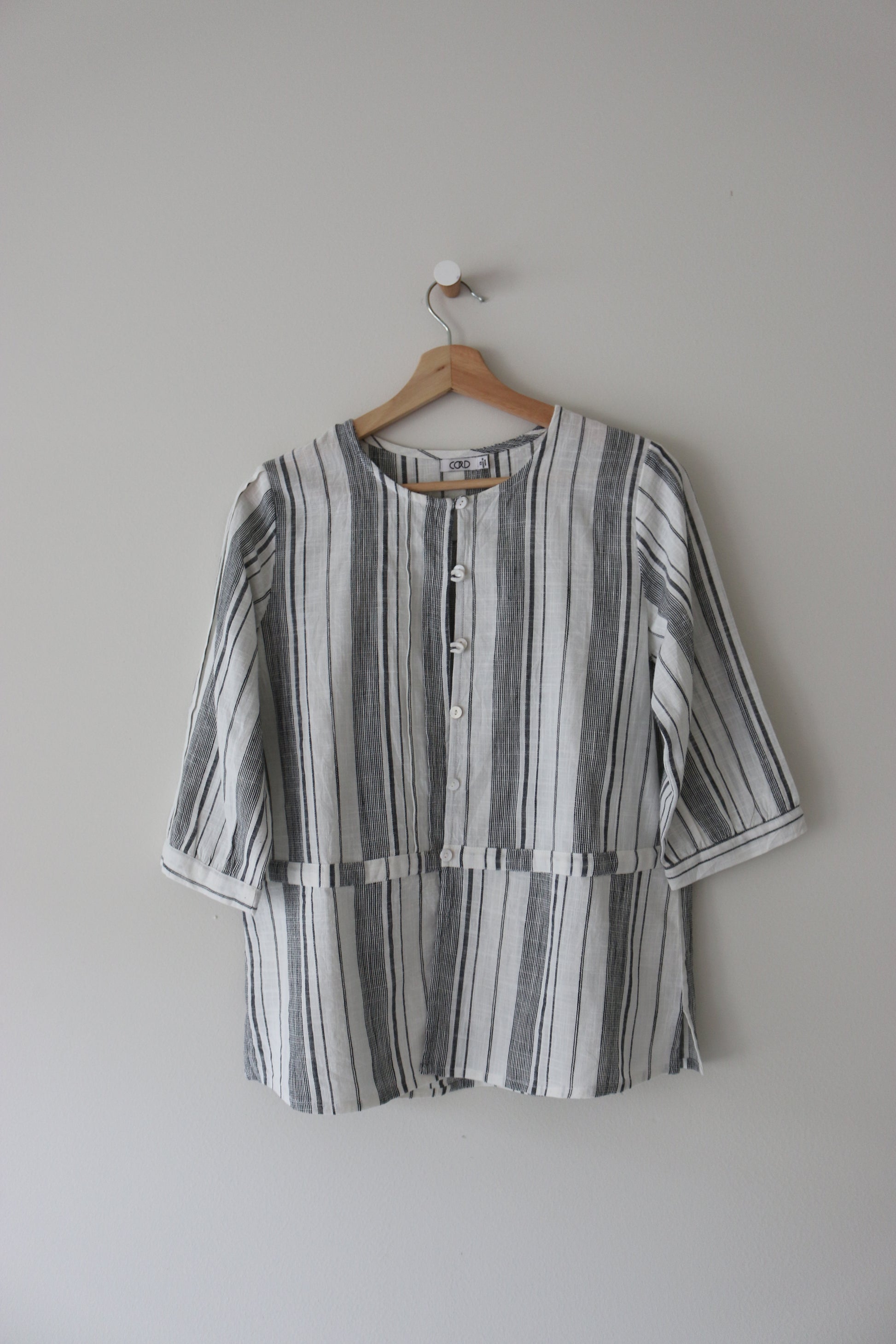 A timeless staple with artisanal roots, this black and white blouse is crafted from 100% handwoven cotton for a naturally soft and breathable feel. Featuring a classic button-down front and a relaxed silhouette, it’s a versatile piece that pairs effortlessly with everything from jeans to skirts.