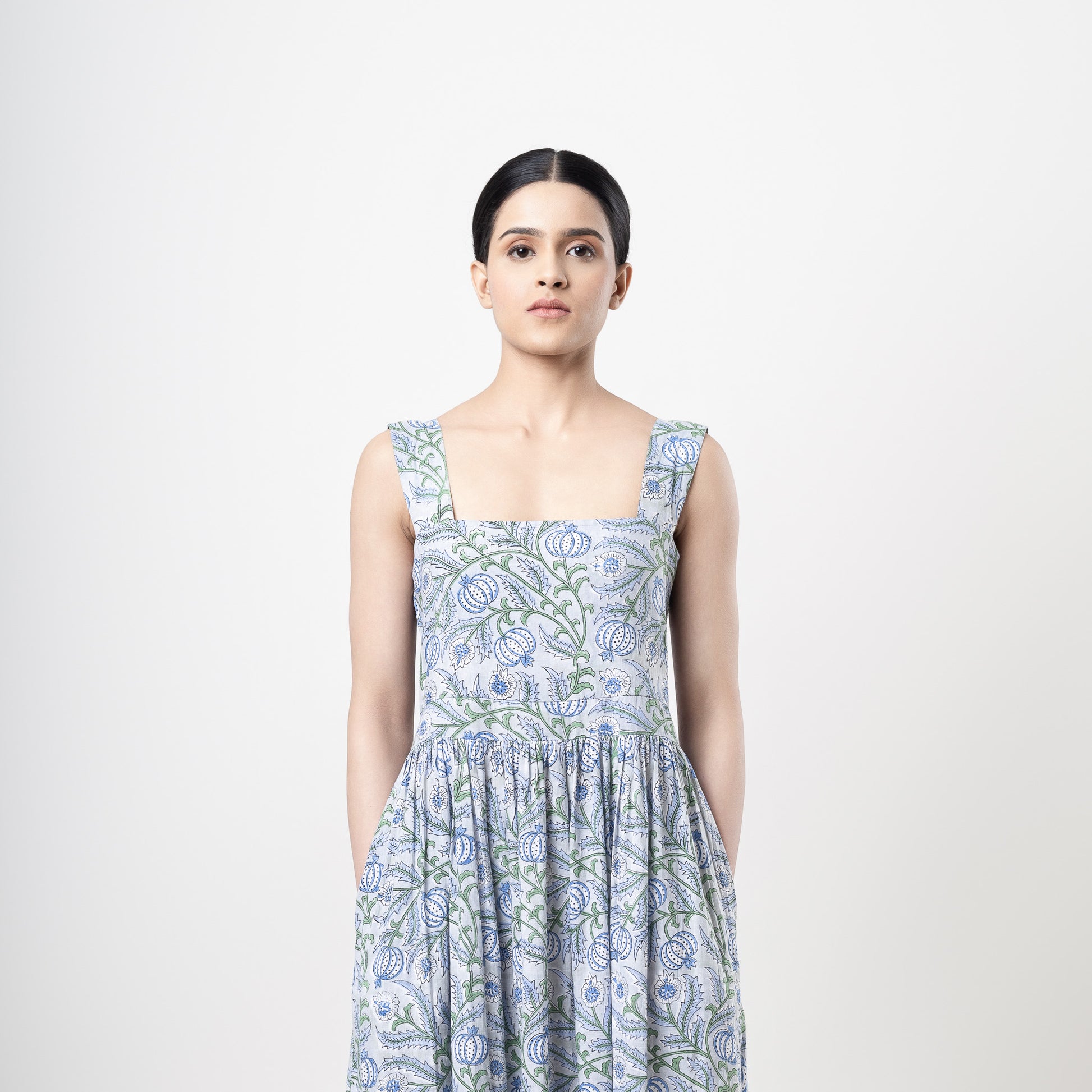 Introducing the Everyday Maxi Dress, crafted from luxurious 100% cotton adorned with beautiful block prints. With an easy relaxed fit and a sophisticated square neck, this dress is both comfortable and stylish. The smocked back and side pockets add subtle yet practical touch to this elegant and exclusive piece. Elevate your wardrobe with this must-have dress.